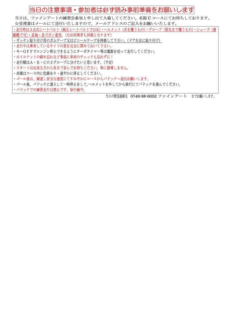 - 令和8年3月22日(日)名阪Cコースレベルアップ練習会