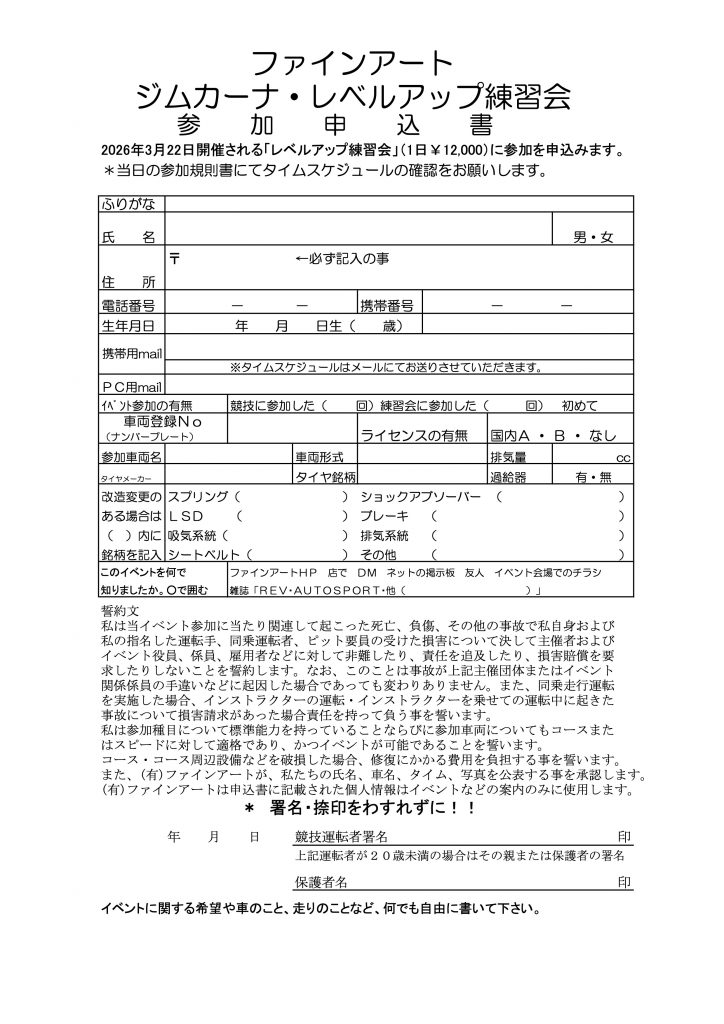 FINEART練習会申し込みページ